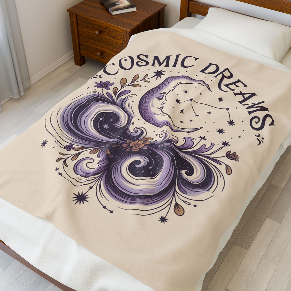 Cosmic Dreams Velveteen Plush Blanket with Celestial Moon & Stars